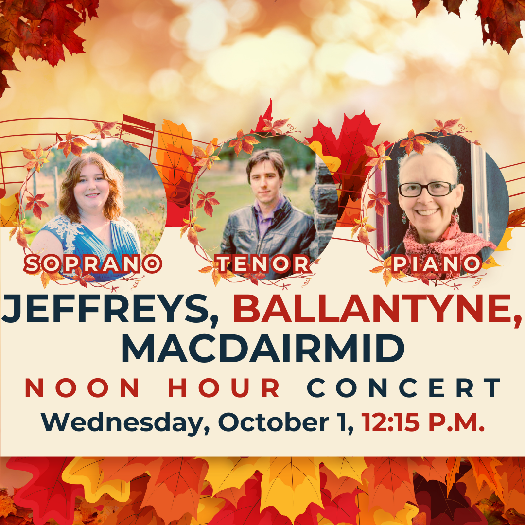 You’re invited to come and see a brand new line of performances in our 50th Anniversary Fall 2025 Noon Hour Concert Series! Admission to the building is free, and a sandwich lunch is available for purchase prior to each recital between 11:30 a.m. - 12:15 p.m., with the concerts beginning at 12:15 p.m.