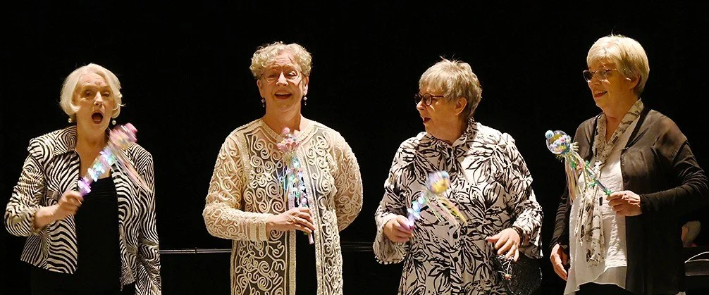 The women in New Tricks, Kathy Hanneson (baritone), Laura Pudwell (bass), Susan St. John (tenor) and Carol Ann Treitz (lead) bring a combined 100+ years of performance experience to the stage. Blending their varied expertise in barbershop, theatre, opera and classical performance practice, they’ve joined together to celebrate the joy of vocal harmonies and their shared love of singing one-on-a-part music, chocolate and tea.