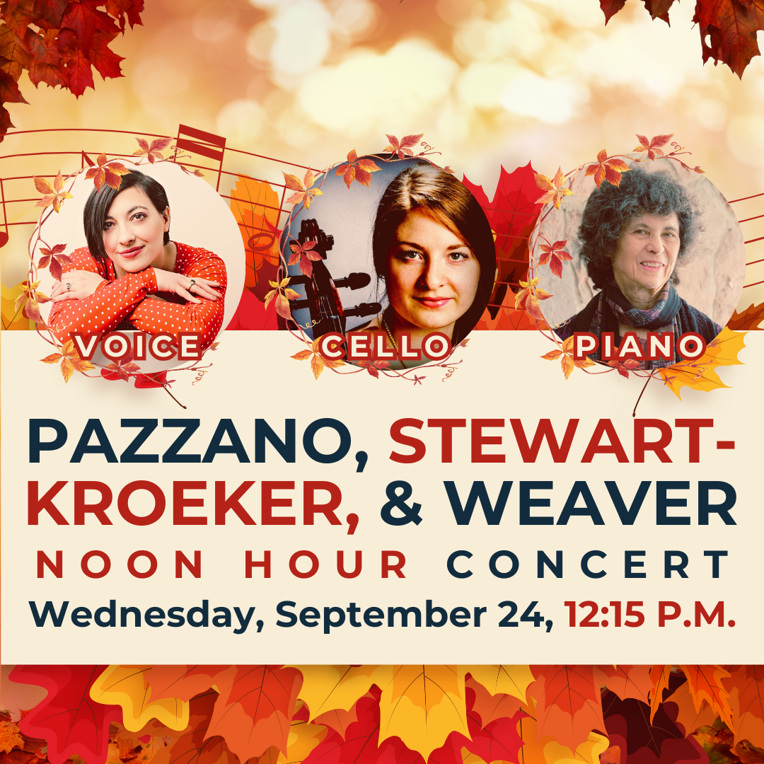 You’re invited to come and see a brand new line of performances in our 50th Anniversary Fall 2025 Noon Hour Concert Series! Admission to the building is free, and a sandwich lunch is available for purchase prior to each recital between 11:30 a.m. - 12:15 p.m., with the concerts beginning at 12:15 p.m.