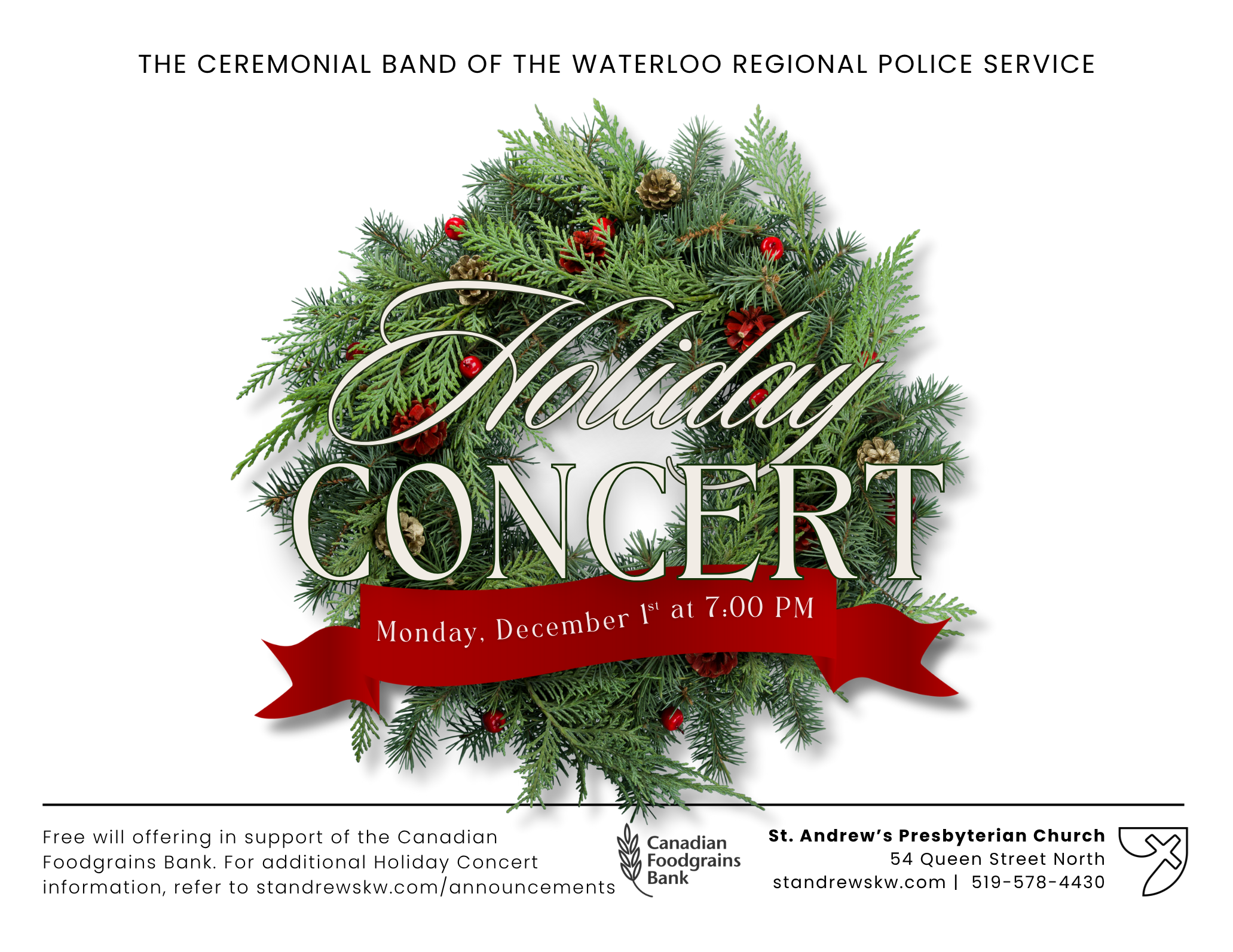 Join us for a holiday concert featuring THE CEREMONIAL BAND OF THE WATERLOO REGIONAL POLICE SERVICE