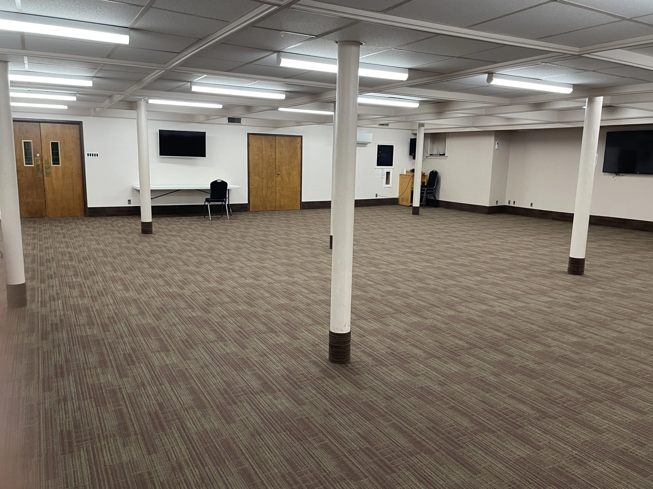 Carpeted, Tables and chairs available